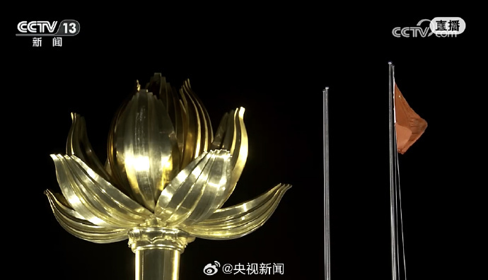 当代表团依次站好之后,全场渐渐安静了下来。“请全体起立,升中华人民共和国国旗,奏唱中华人民共和国国歌。”在国歌声中,国旗在广州、香港、澳门三地同步升起。